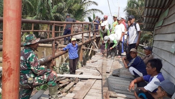 Jelang TMMD 106, TNI Inhil dan Masyarakat Perbaiki Jembatan Darurat