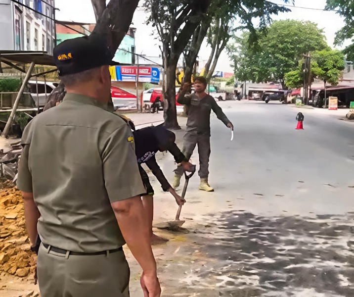 Ceceran Tanah Timbun Ganggu Jalan di Jalan Paus, Satpol PP Pekanbaru Tegur Pemilik Lahan